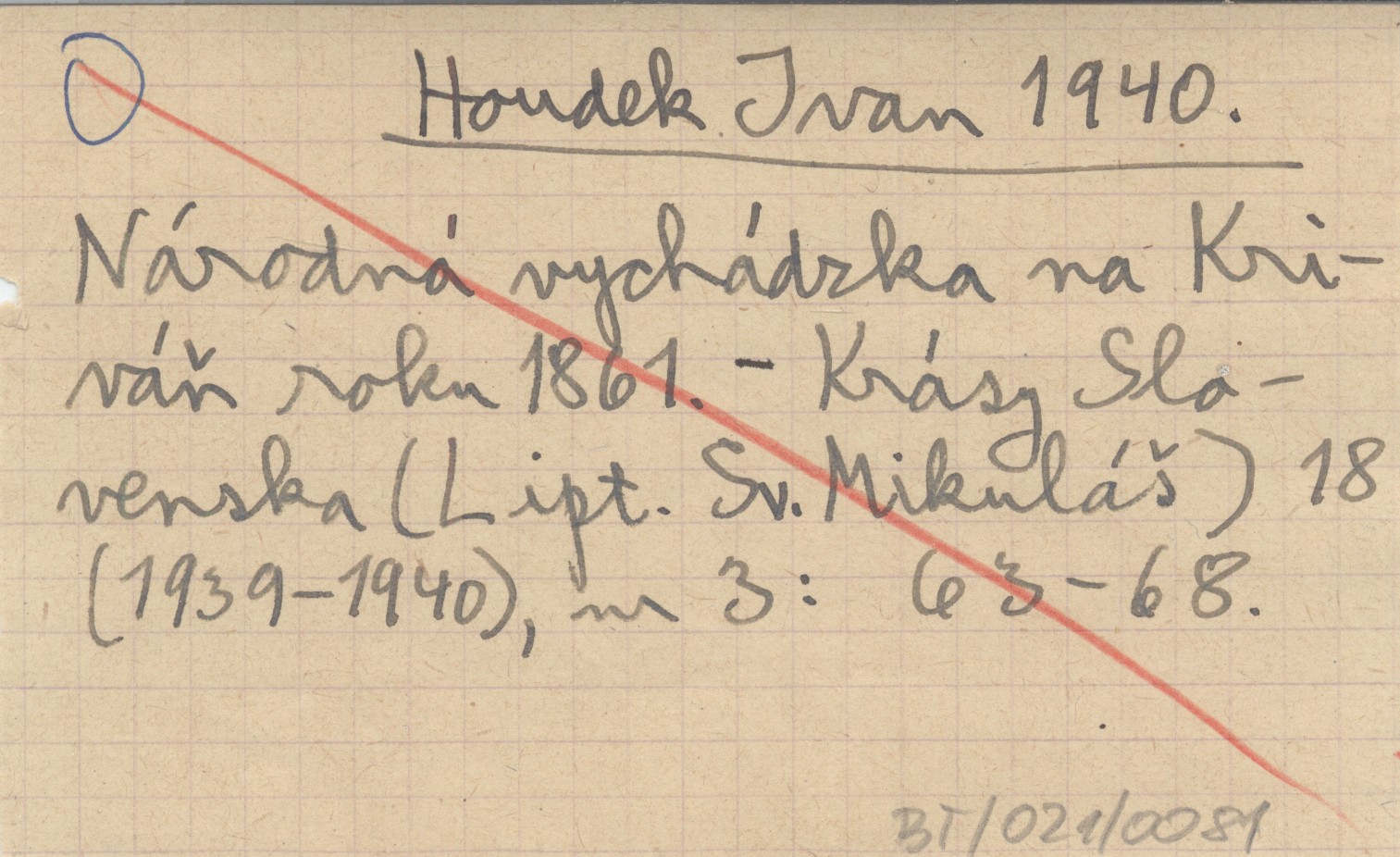 HOUDEK Ivan 1940 Národná vychádzka na Kriváň roku 1861.