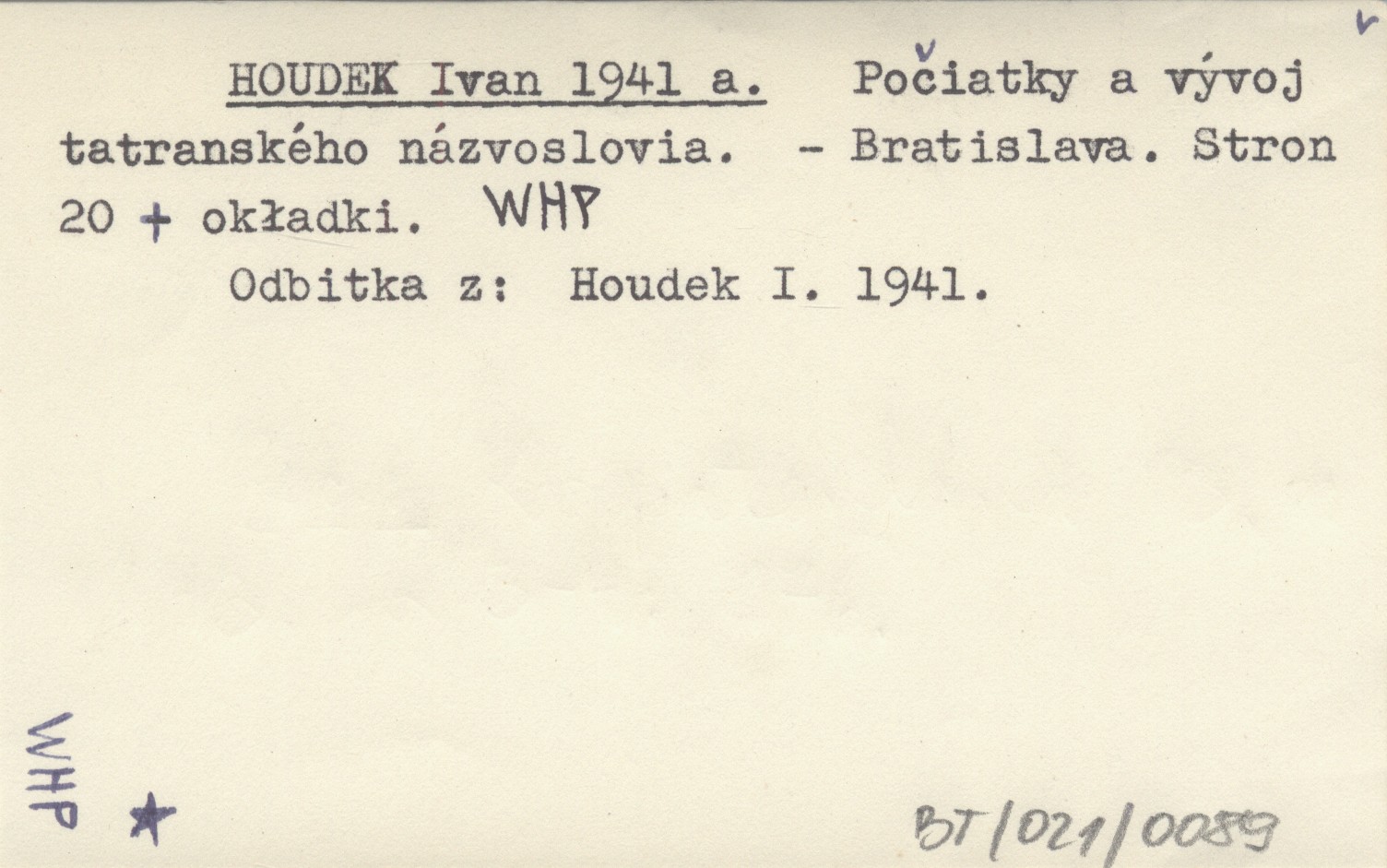 HOUDEK Ivan 19441 a Počiatky a vývoj tatranského názvoslovia.