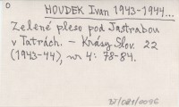 HOUDEK Ivan 1943-1944... Zelené pleso pod Jastrabou v Tatrách.