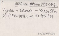 HOUDEK Ivan 1945-1946... Vysoká v Tatrách.