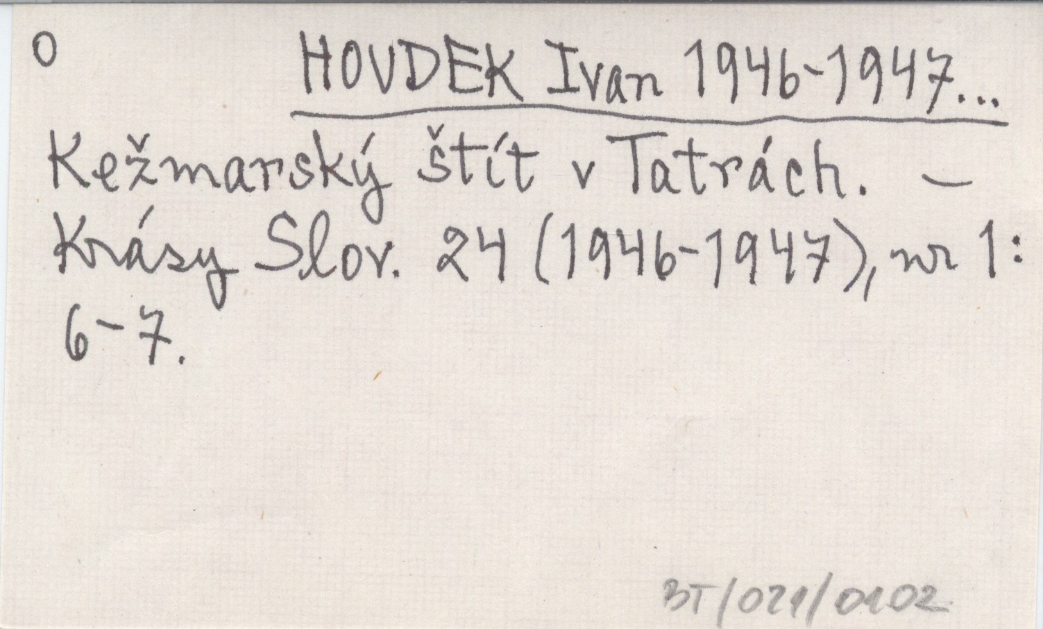 HOUDEK Ivan 1946-1947... Kežmarský štít v Tatrách.