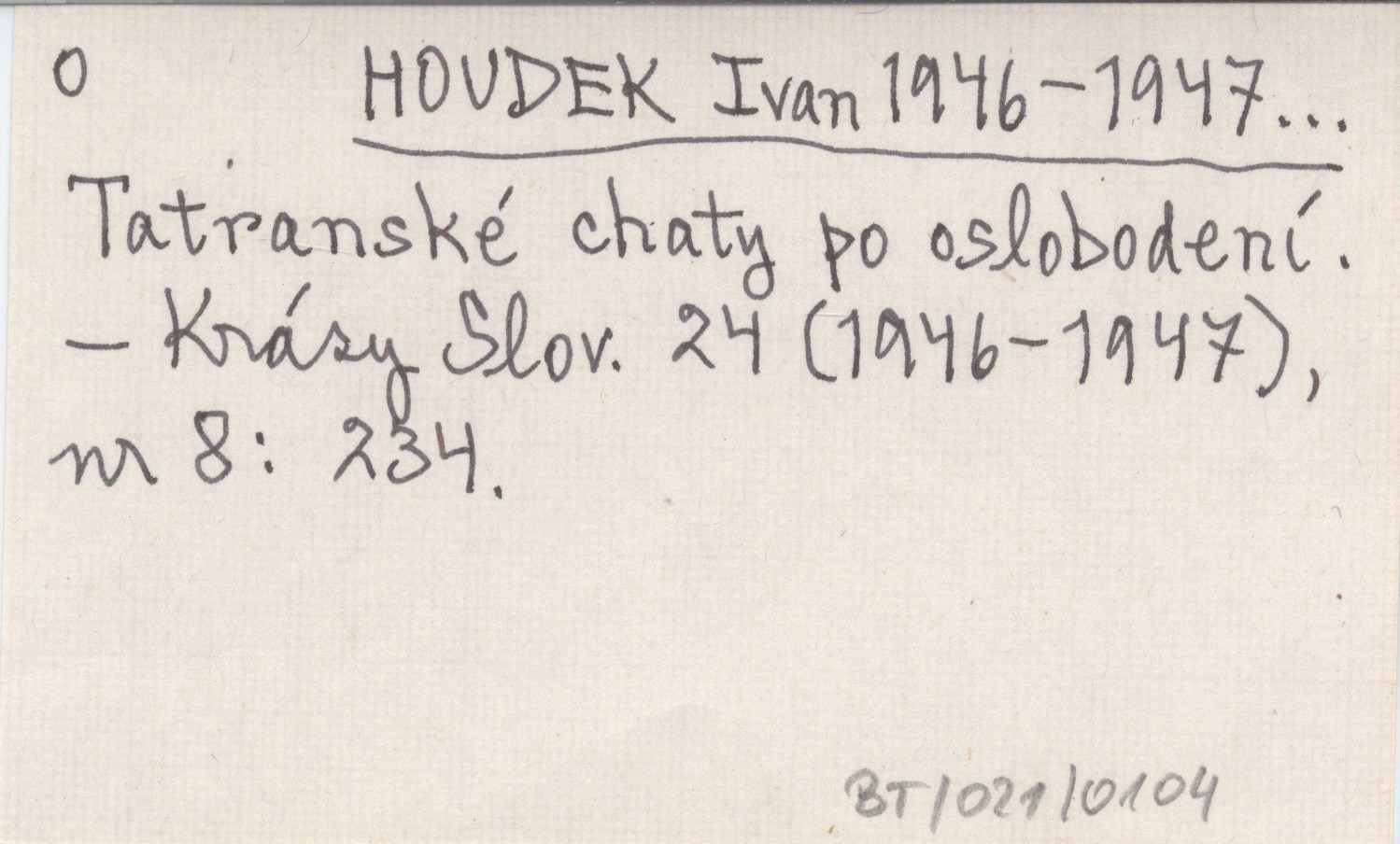 HOUDEK Ivan 1946-1947... Tatranské chaty po oslobodení.