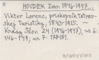 HOUDEK Ivan 1946-1947... Viktor Lorenc, priekopník tatranskej turistiky, 1843-1915.
