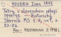 HOUDEK Ivan 1947 Tatry v slovenskom odboji 1944-45.