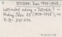 HOUDEK Ivan 1947-1948... Latinské názvy v Tatrách?