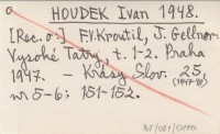 HOUDEK Ivan 1948 F. V. Kroutil, J. Gellner: Vysoké Tatry, t. 1-2. Praha 1947.