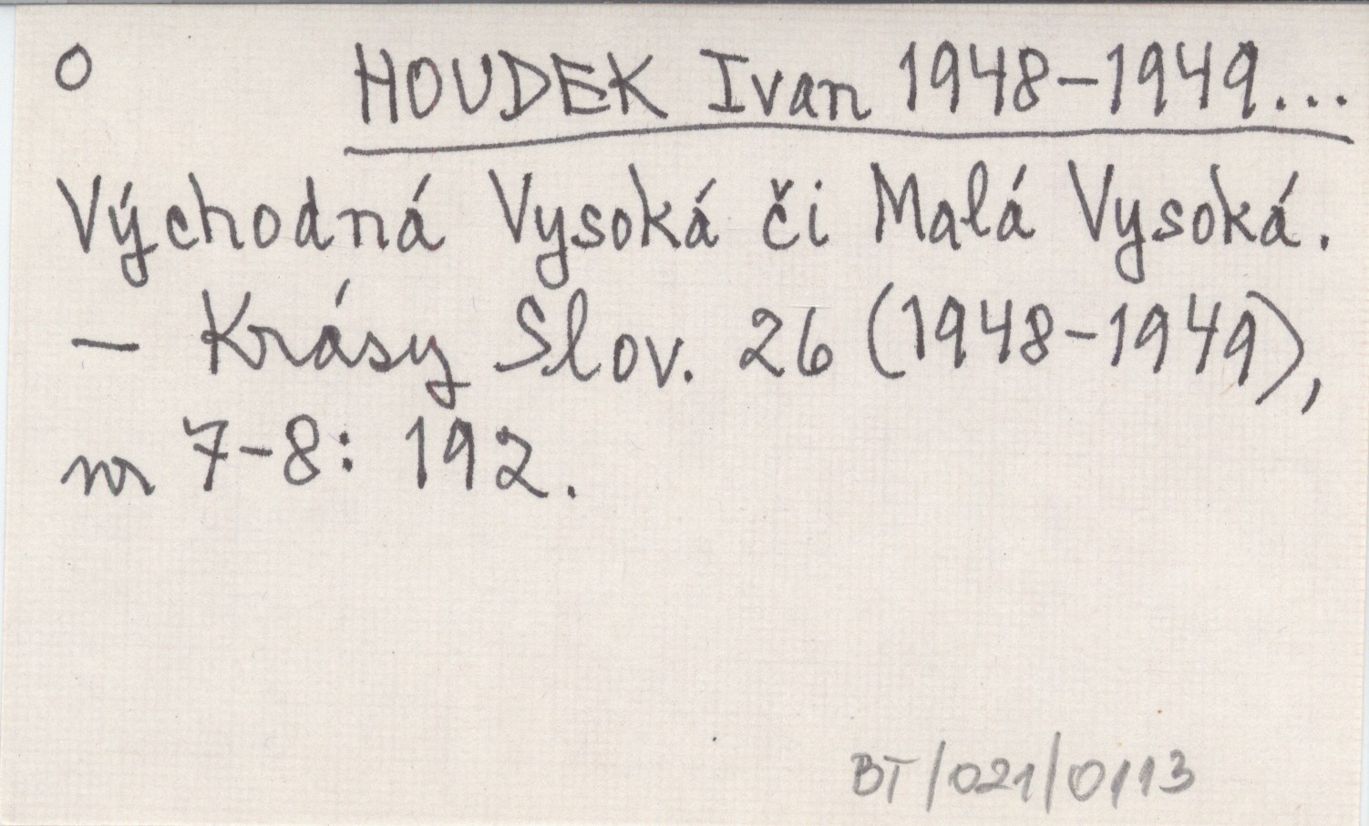 HOUDEK Ivan 1948-1949... Východná Vysoká či Malá Vysoká.