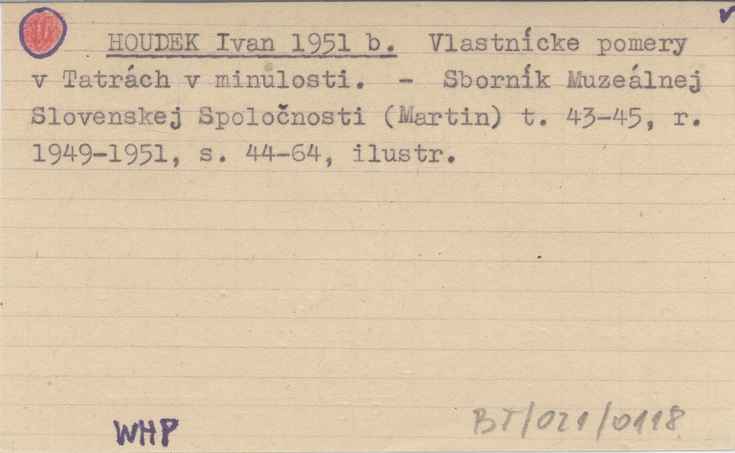 HOUDEK Ivan 1951 b Vlastnícke pomery v Tatrách v minulosti.