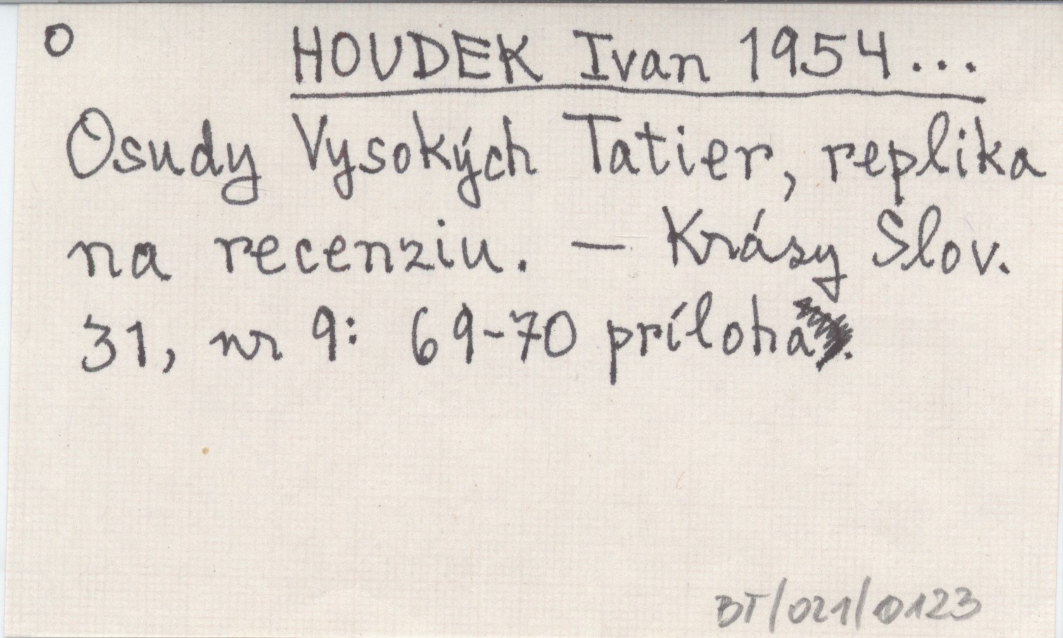 HOUDEK Ivan 1954... Osudy Vysokých Tatier, replika na recenziu.