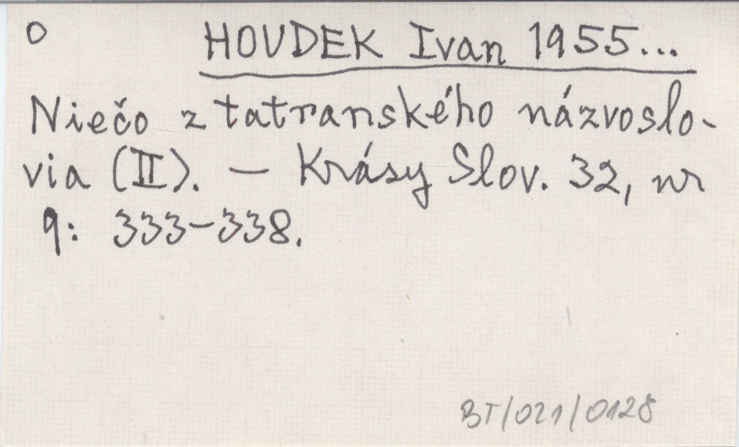 HOUDEK Ivan 1955... Niečo z tatranského názvoslovia (II).