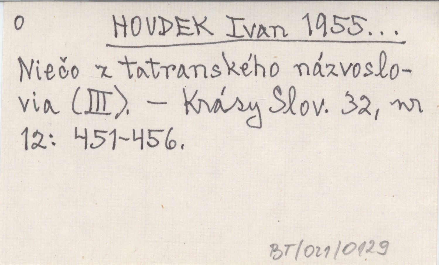 HOUDEK Ivan 1955... Niečo z tatranského názvoslovia (III).