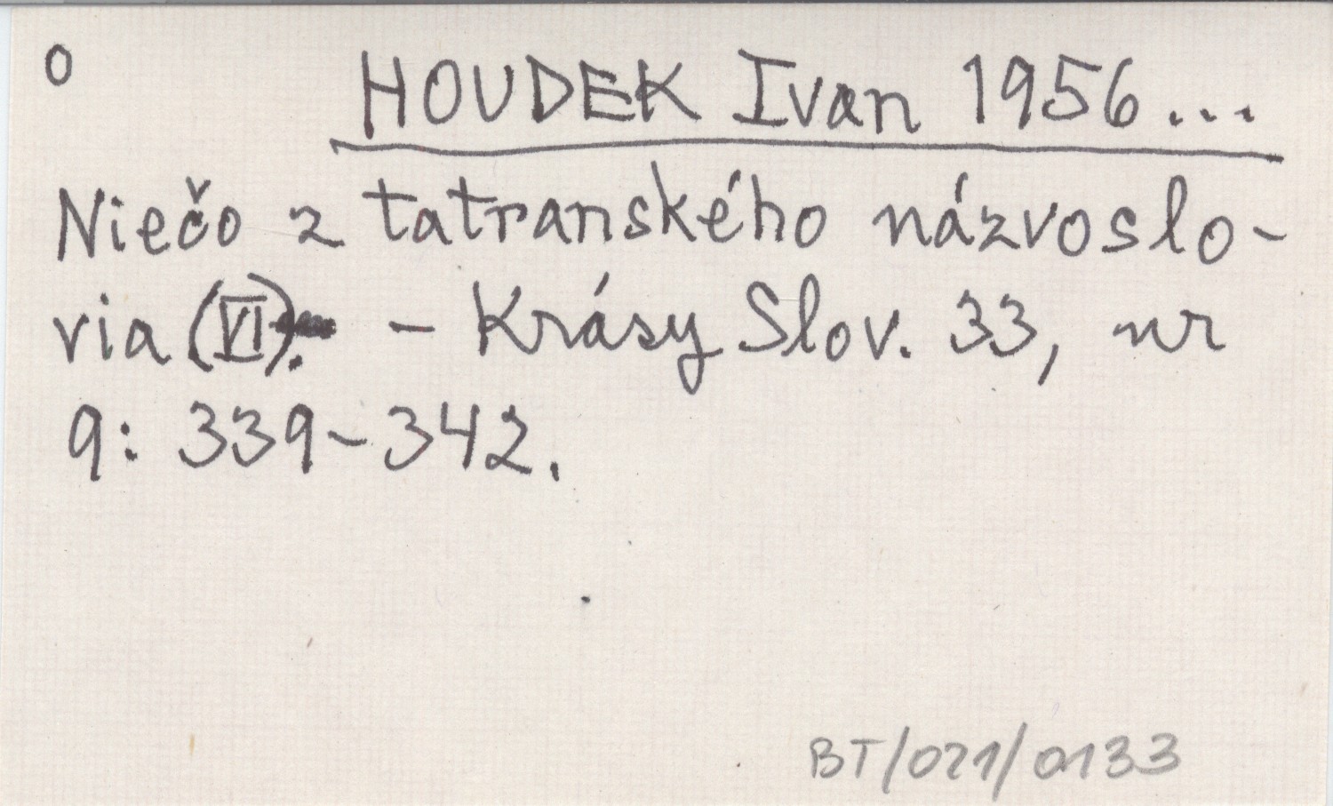 HOUDEK Ivan 1956... Niečo z tatranského názvoslovia (VI).