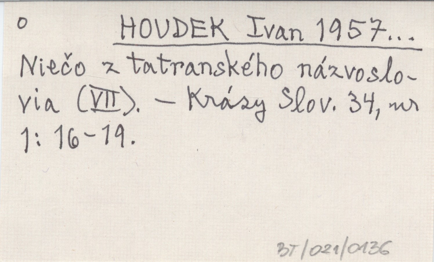 HOUDEK Ivan 1957... Niečo z tatranského názvoslovia (VII).