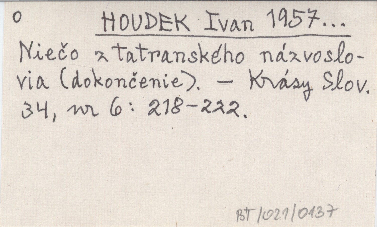 HOUDEK Ivan 1957... Niečo z tatranského názvoslovia (dokončenie).