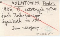 AXENTOWICZ Teodor 1927 O "istotnych potrzebach Zakopanego".