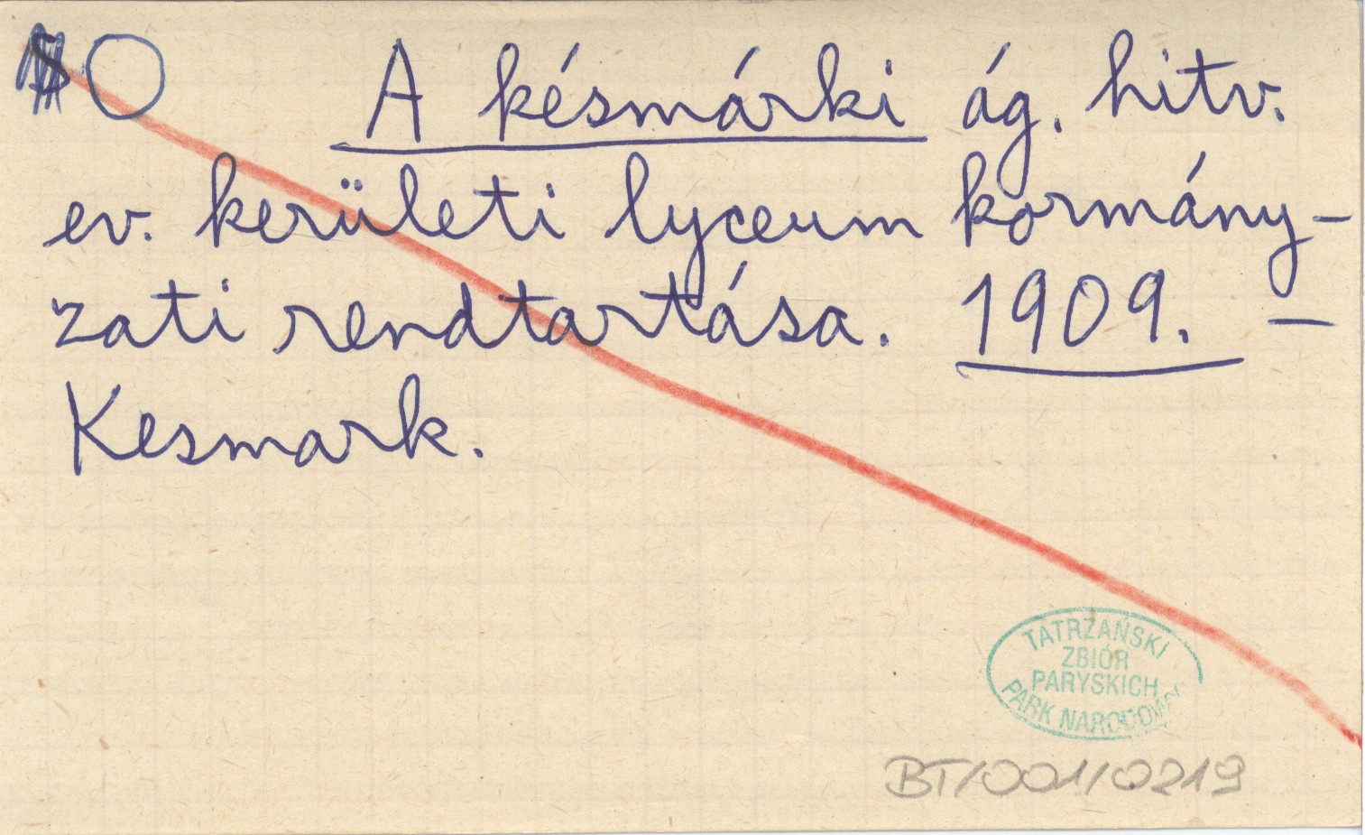 A késmárki ág. litv. ev. kerületi lyceum kormányzati rendtartása. 1909