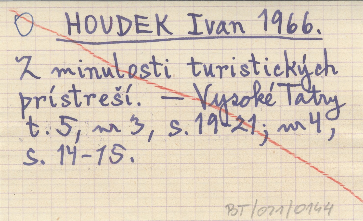 HOUDEK Ivan 1966 Z minulosti turistických prístreší.