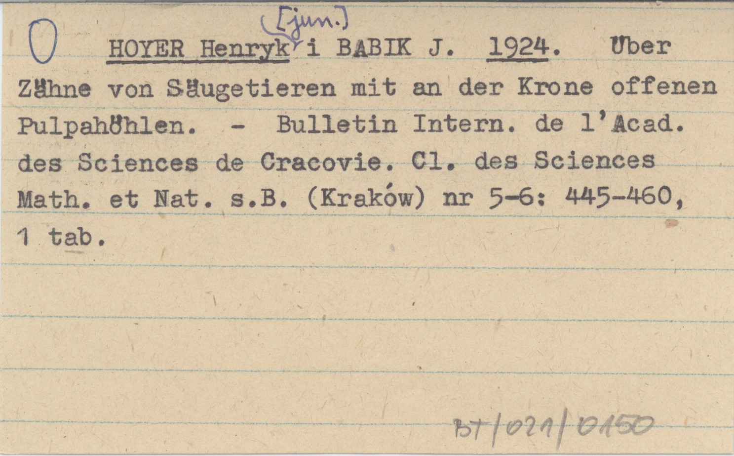 HOYER Henryk [jun.] BABIK, J. ; 1924 Über Zähne von Säugetieren mit an der Krone offenen Pulpahöhlen.