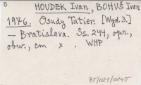 HOUDEK Ivan BOHUŠ, Ivan. ; 1976 Osudy Tatier.