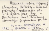 Hovorená podoba sposovnej slovenčiny. Referáty a diskusné príspevky z konferencie dňa 6-9. októbra 1965. 1972