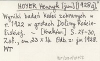 HOYER Henryk [jun.] 1928 Wyniki badań kości zebranych w r. 1922 w grotach Doliny Kościeliskiej.