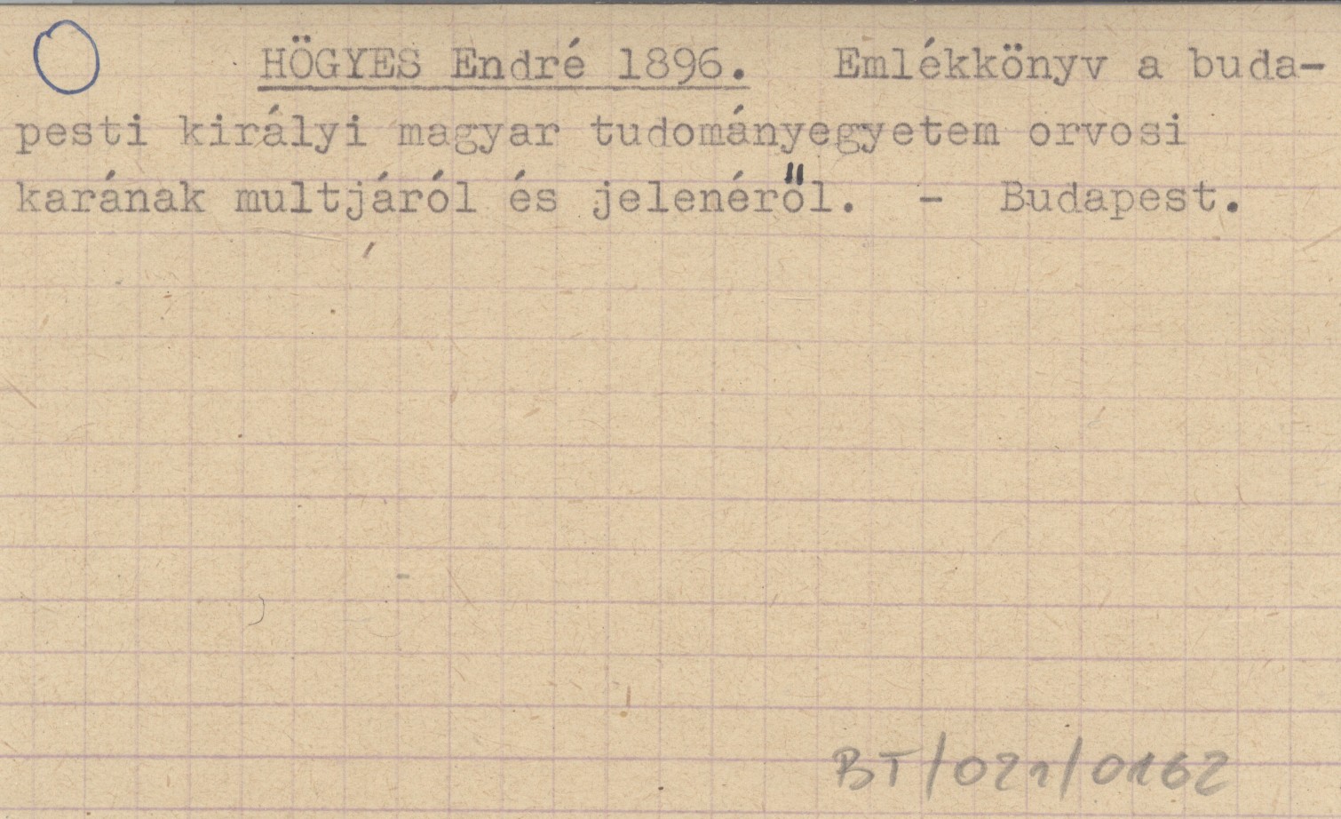 HÖGYES Endré 1896 Emlékkönyv a budapesti királyi magyar tudományegyetem orvosi karának multjáról és jelenéről.