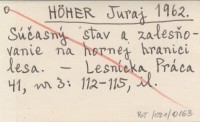 HÖHER Juraj 1962 Súèasný stav a zalesòovanie na hornej hranici lesa.