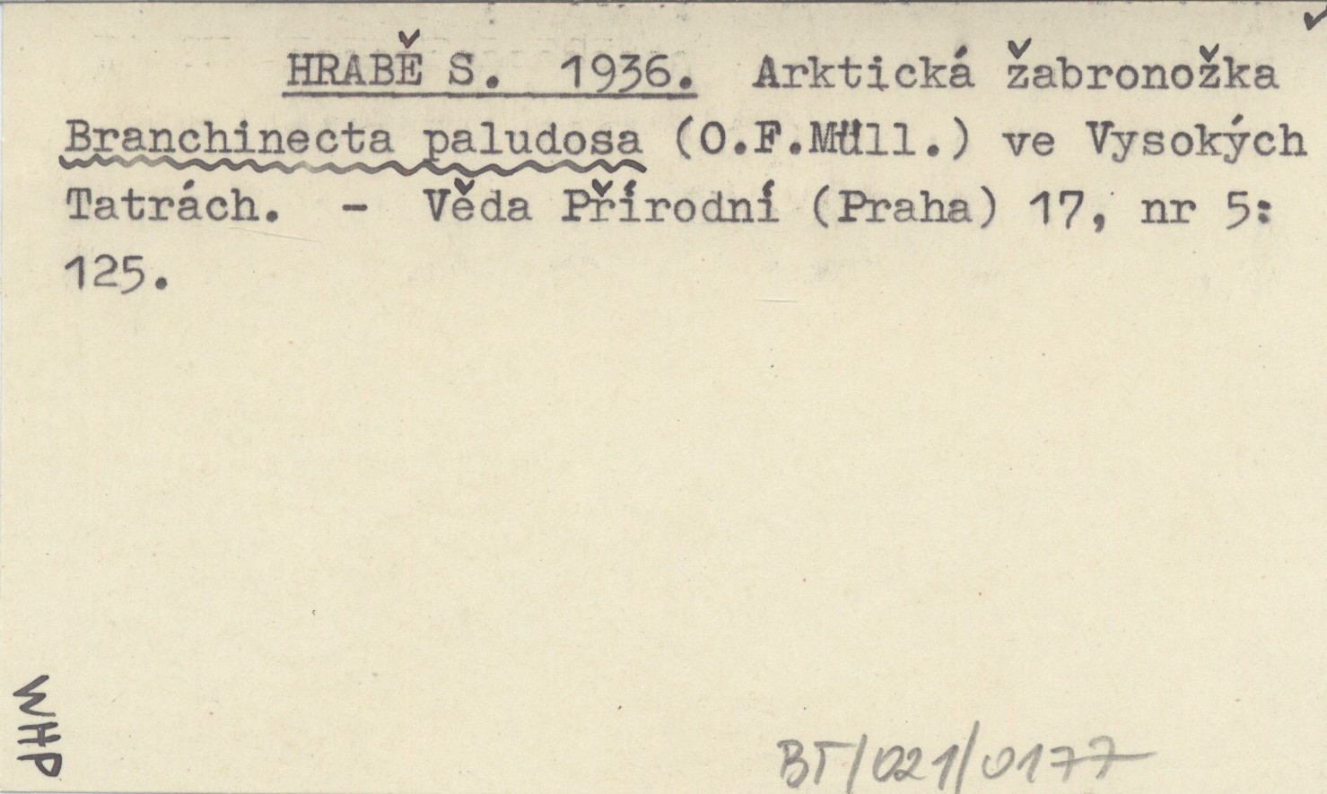 HRABĚ S. 1936 Arktická žabronožka Branchinecta paludosa (O. F. Müll.) ve Vysokých Tatrách.