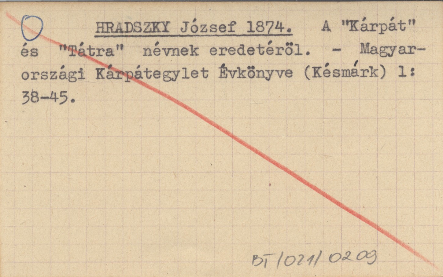 HRADSZKY József 1874 A "Kárpát" és "Tátra" névnek eredetéröl.