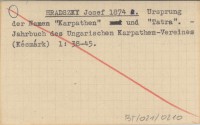 HRADSZKY József 1874 A "Kárpát" és "Tátra" névnek eredetéröl.