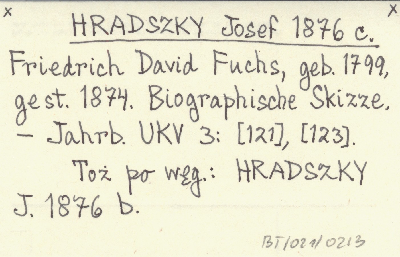 HRADSZKY Josef 1876 c Friedrich David Fuchs, geb. 1799, gest. 1874. Biographische Skizze.