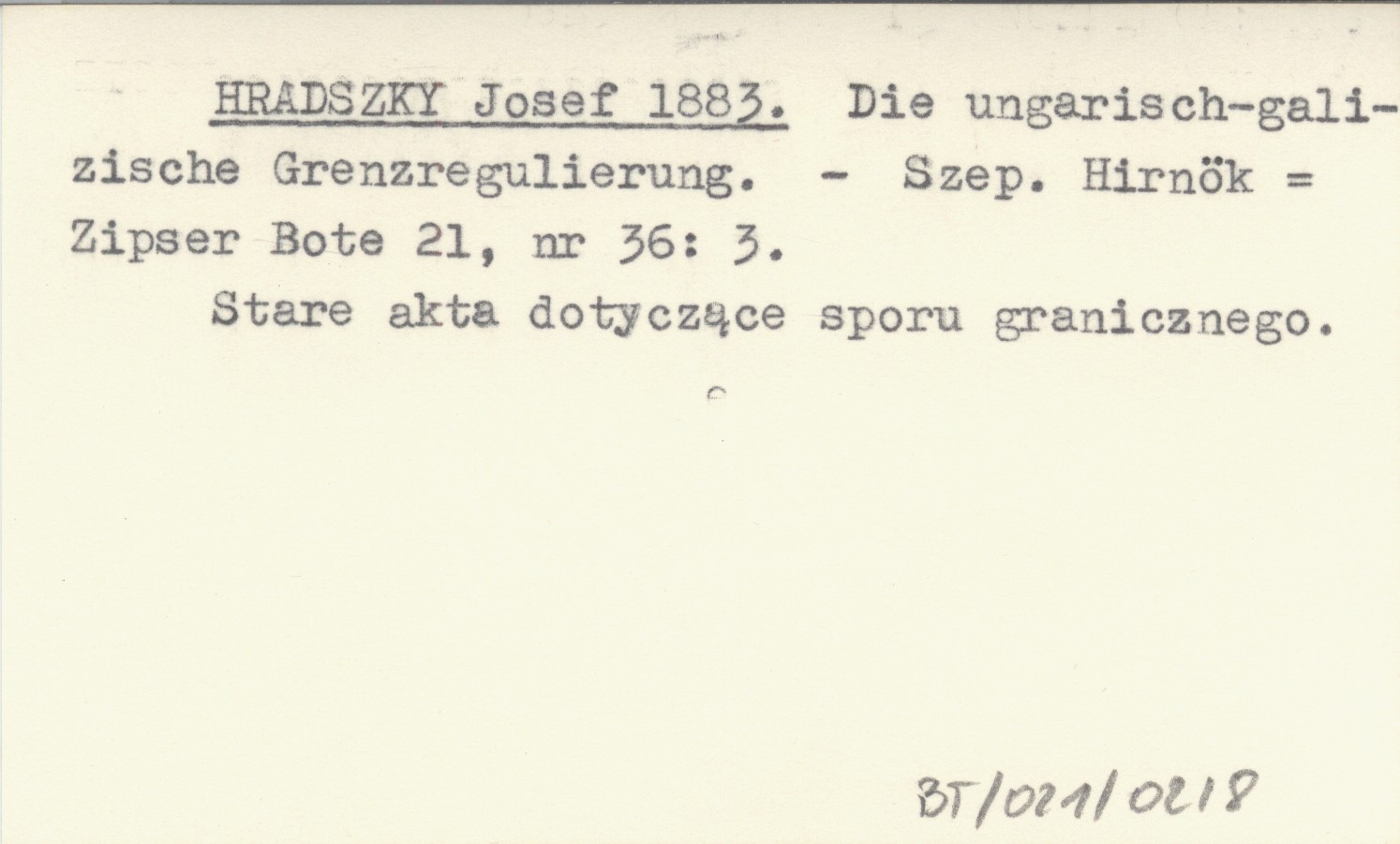 HRADSZKY Josef 1883 Die ungarisch-galizische Grenzregulierung.