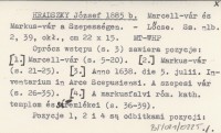 HRADSZKY József 1885 a A markusfalvi róm. kath. templom és síremlékei.