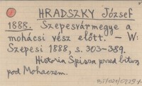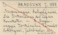 HRADSZKY Josef 1886, 1887 Szepes vármegye helységnevei.