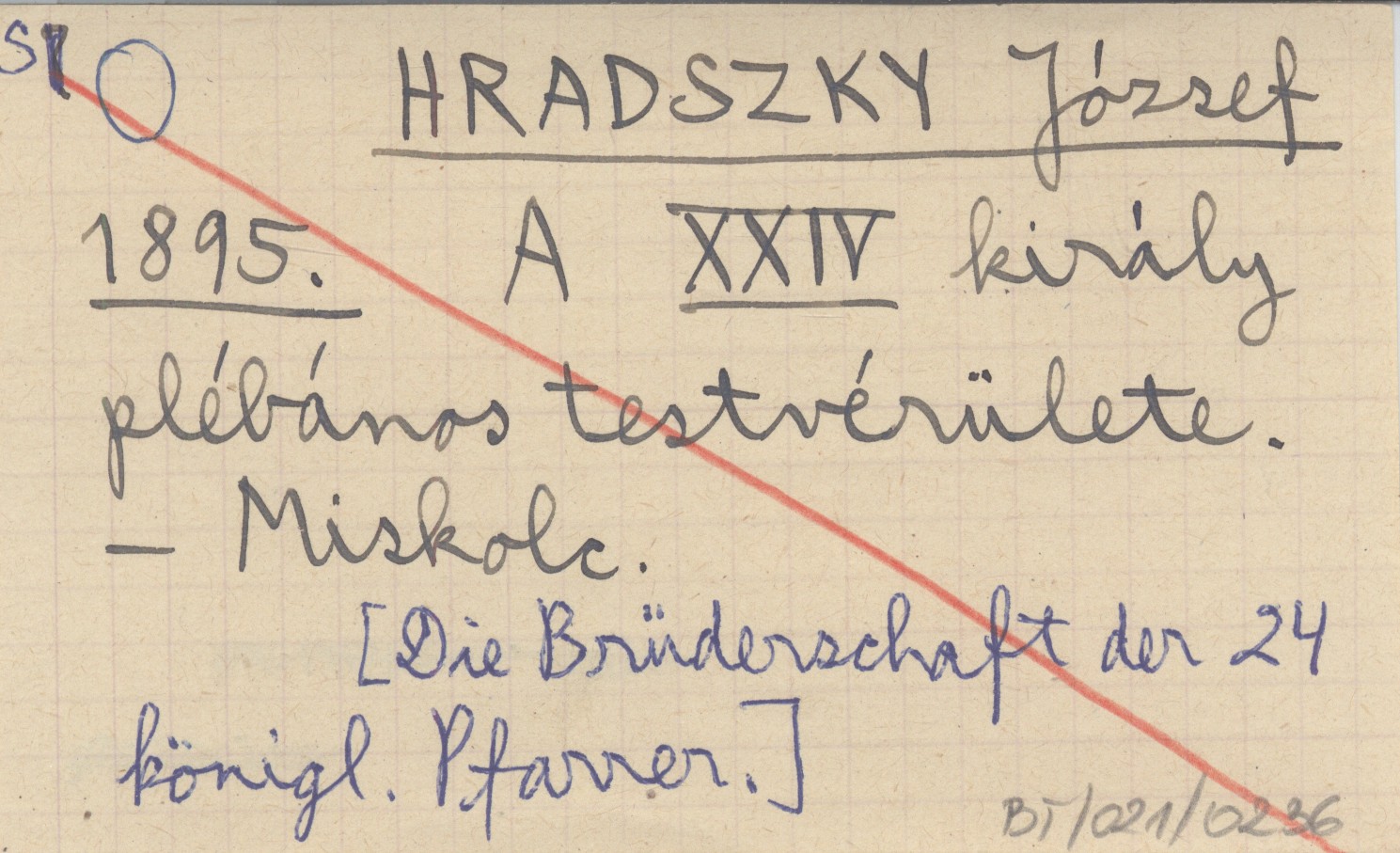 HRADSZKY József 1895 A XXIV király plábénos testvérülete.