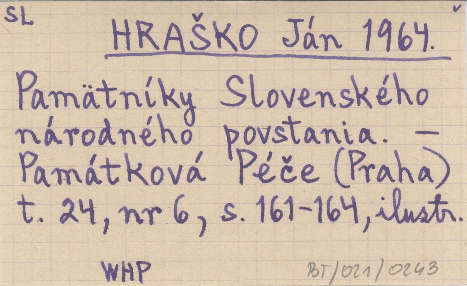 HRAŠKO Ján 1964 Pamätníky Slovenského národného povstania.