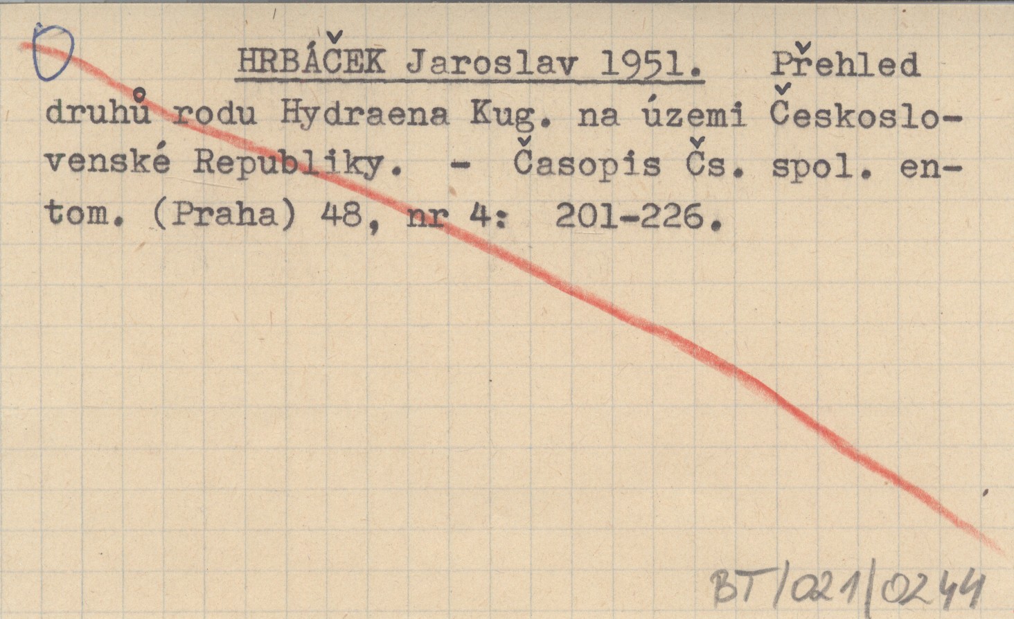 HRBÁČEK Jaroslav 1951 Přehled druhů rodu Hydraena Kug. na územi Československé Republiky.