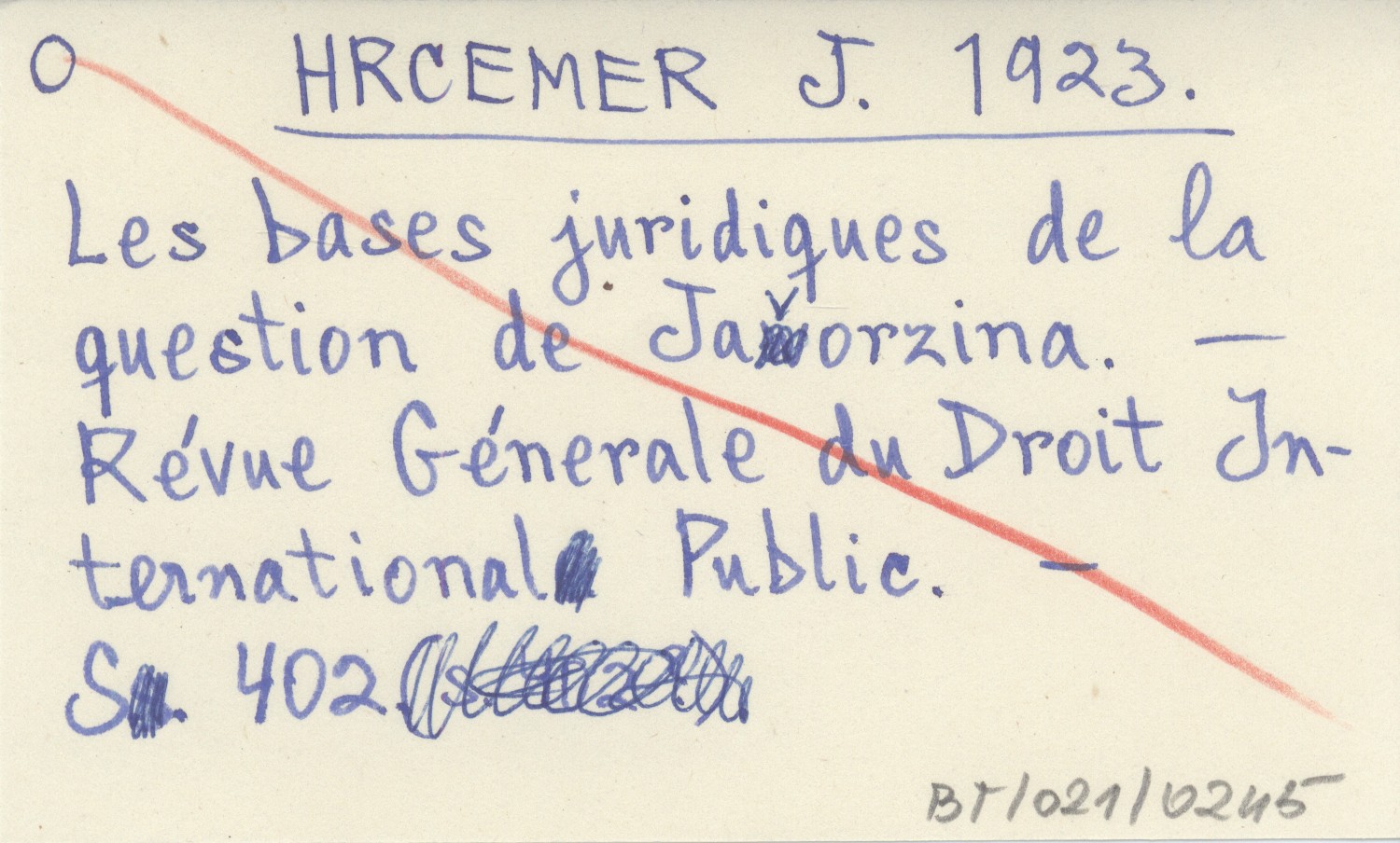 HRCEMER J. 1923 Les bases juridiques de la question de Javorzina.