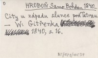 HROBOŇ Samo Bohdan 1840... City u západu slunce pod Tatrau.