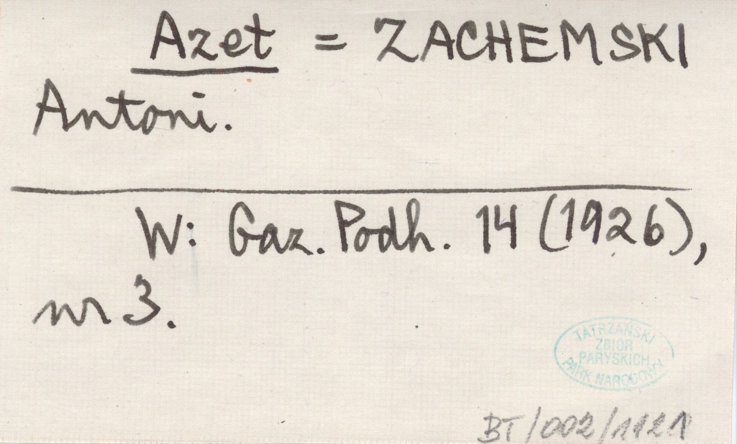 Azet ZACHEMSKI Antoni Gazeta Podhalańska 14 (1926), nr 3.