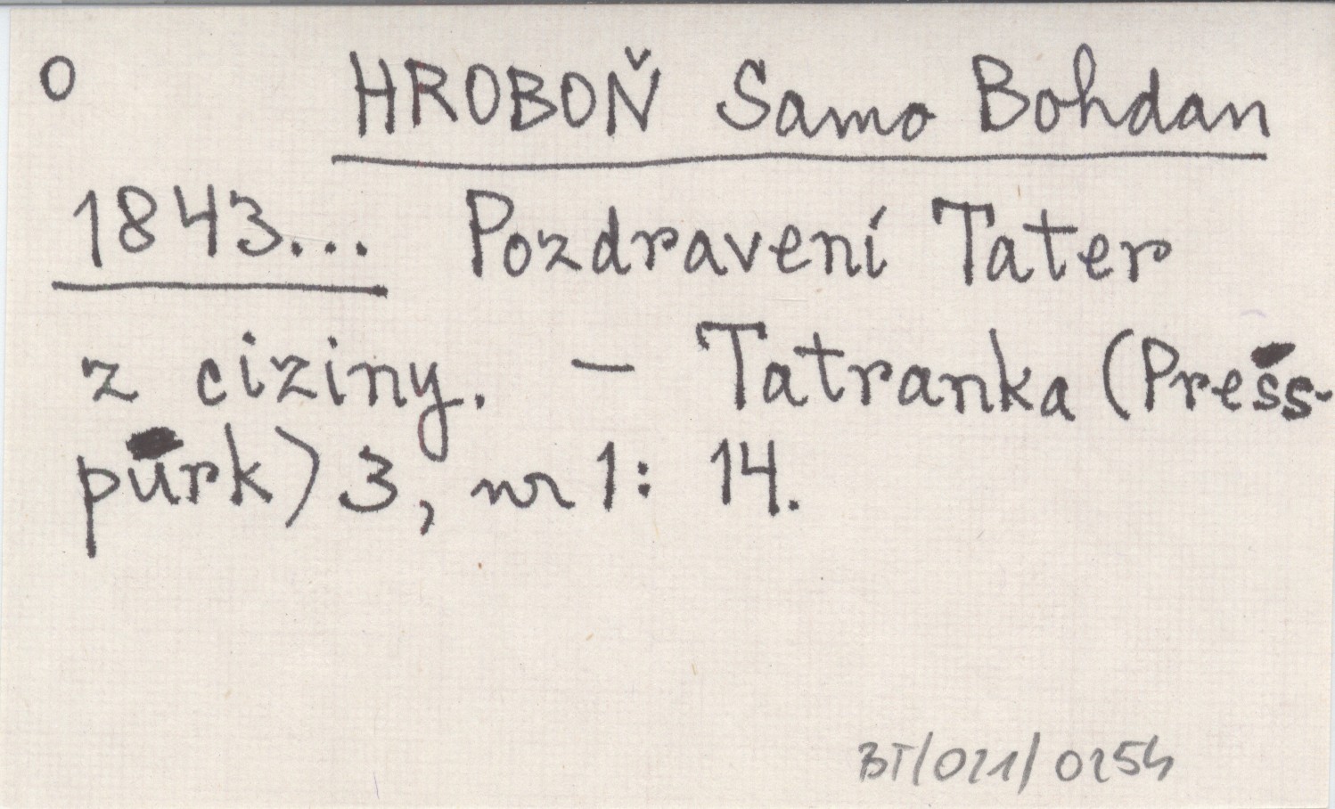 HROBOŇ Samo Bohdan 1843... Pozdravení Tater z ciziny.