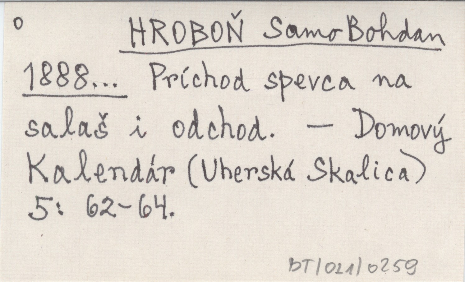 HROBOŇ Samo Bohdan 1888... Príchod spevca na salaš i odchod.