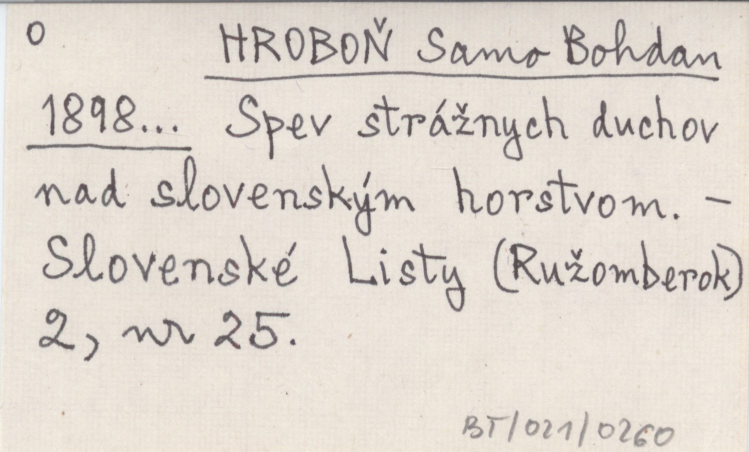 HROBOŇ Samo Bohdan 1898... Spev strážnych duchov nad slovenským horstvom.