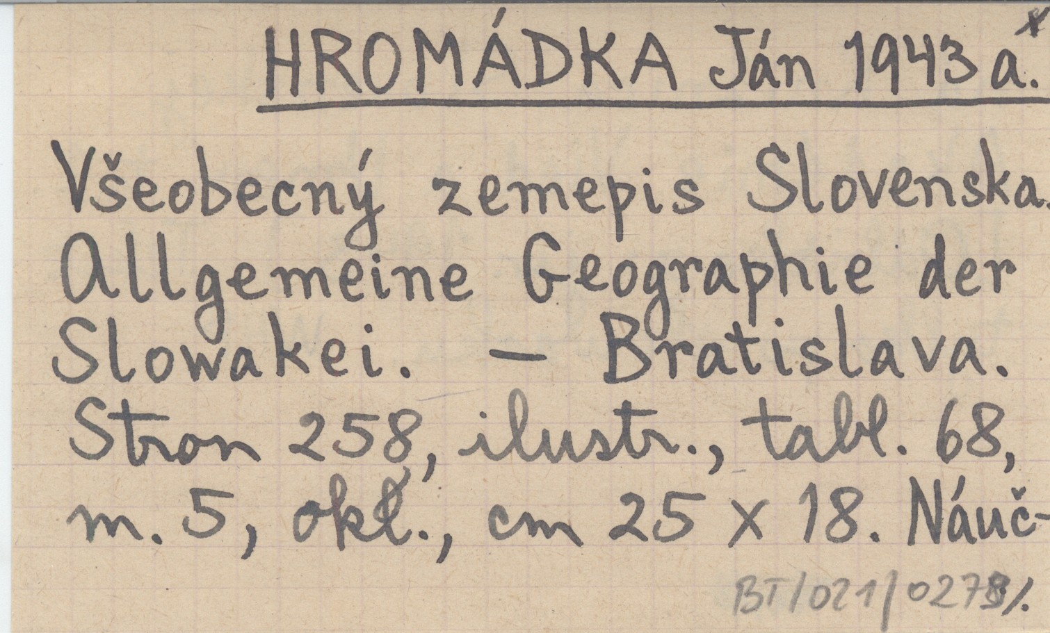 HROMÁDKA Ján 1943 a Všeobecný zemepis Slovenska Allgemeine Geographie der Slowakei.