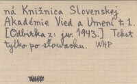 Bratislava (Náučná Knižńica Slovenskej Akadémie Vied a Umení ; 1) , 258 s., il., 68 k., 5 m., okł., 25x18 cm. [Odbitka z: jw. 1943]. Tekst tylko po słowacku.
