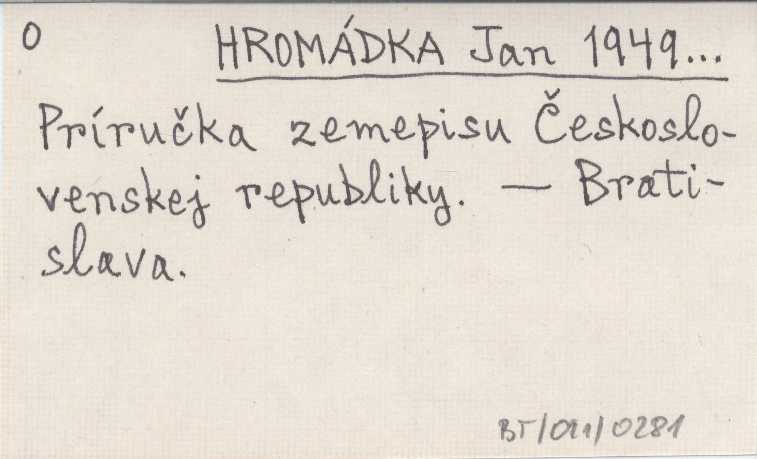 HROMÁDKA Jan 1949... Príručka zemepisu Československej republiky.