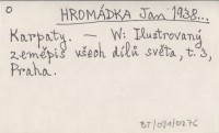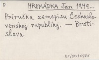 HROMÁDKA Jan 1949... Príručka zemepisu Československej republiky.
