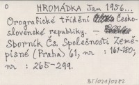 HROMÁDKA Jan 1956... Ortografické třídění Československé republiky.