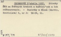 HROMADOVÁ Ľudmiła 1957 Zbierky ŠKM na štátnych hradoch a kaštieľoch a ich reštaurovanie.