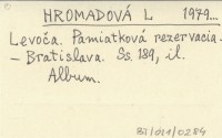 HROMADOVÁ L. 1979... Levoča. Pamiatková rezervacia.